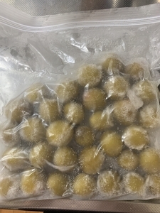 冷凍梅干し1年保存したものです。皮がやわらかく酸っぱくて美味しかったです。