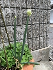 4月末ごろから小さいネギ坊主が出てきて、5月7日はこれほど成長しました。